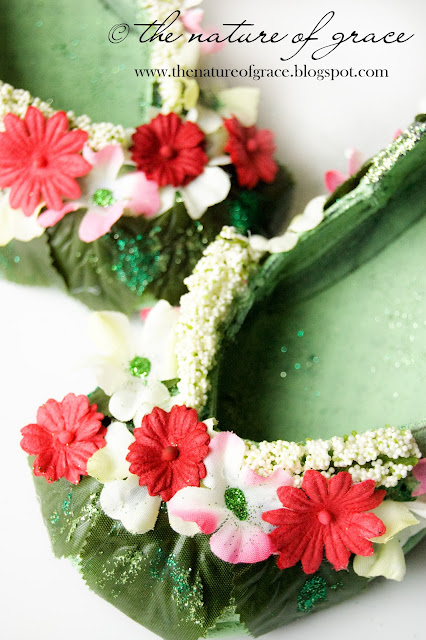 It seemed a shame to put away old winter shoes and this was an extra pair given to us, soooooo I decided to repurpose them into something Miss A could use for dramatic play. AND since we had just finished a St. Patrick's Day unit where we learned that leprechauns are shoemakers for fairies, we decided to to make our own fairy shoes. See the tutorial here.
