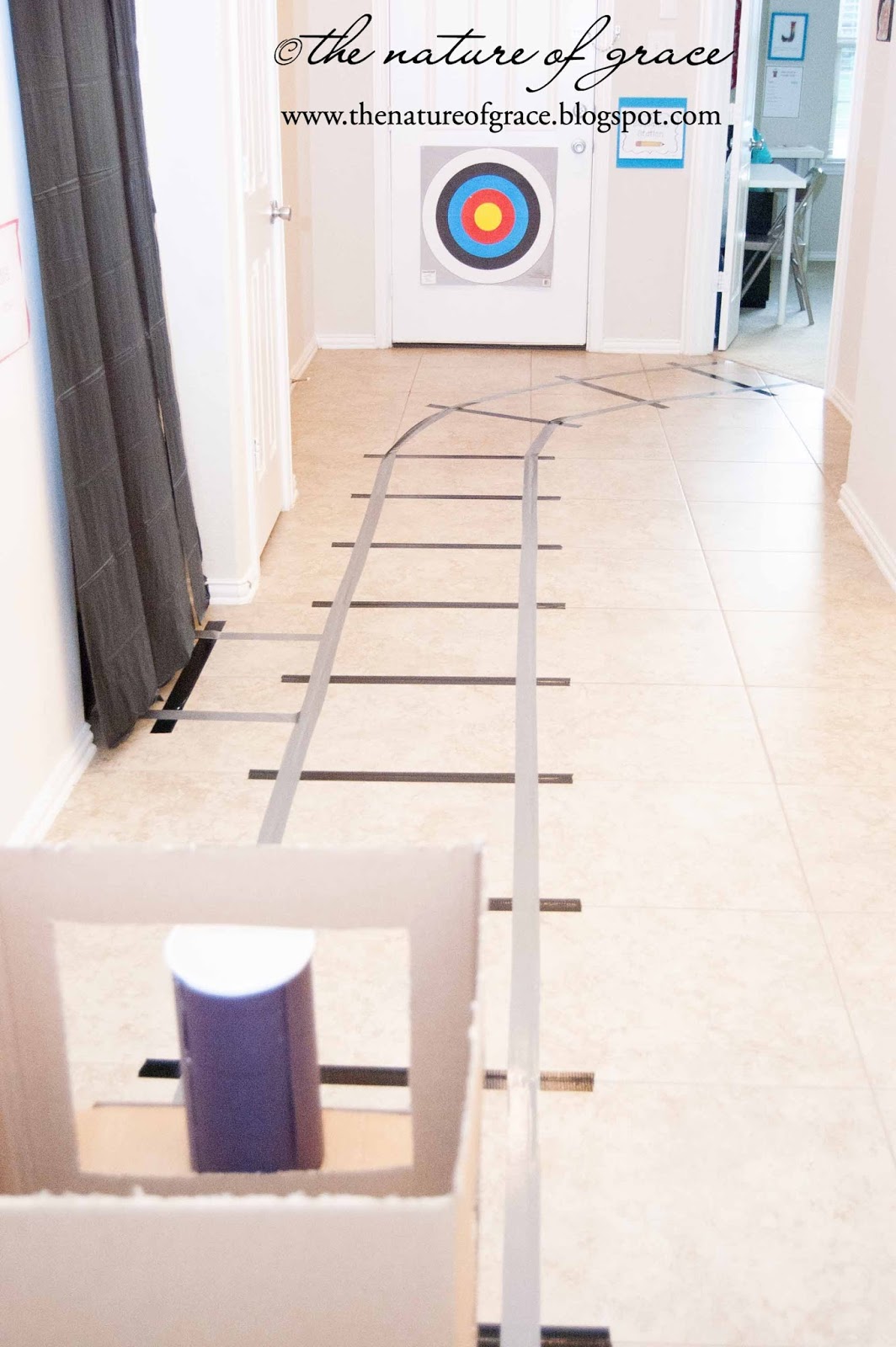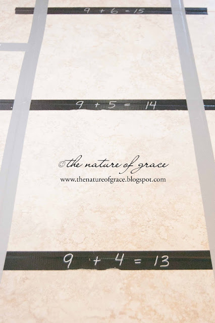 My eldest needed to review some math facts, so I wrote them on the train tracks. Great way to practice each fact on the way to our school room.