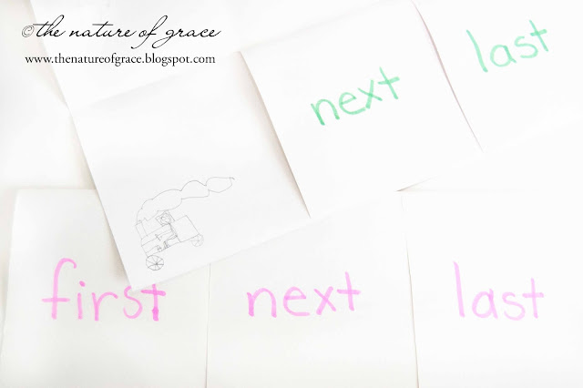 Inspired by the many fun things I saw on the website "play-trains.com", I put words on tracks and had the kids make sentences or simply practice reading sight words by setting up the tracks and using a train to guide their reading one word at a time.