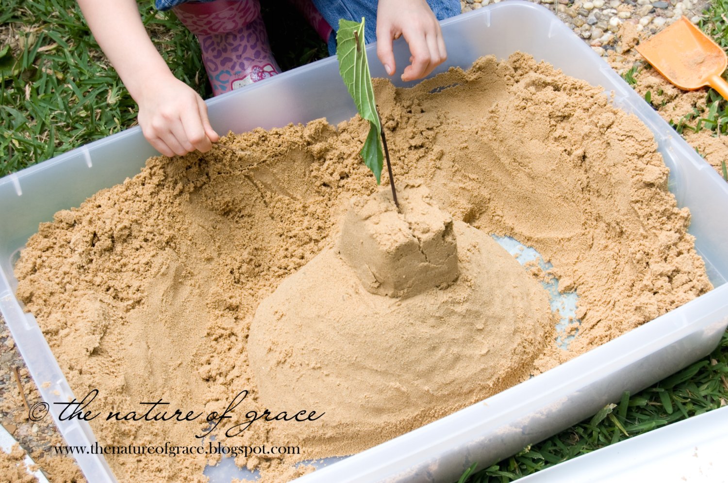 We did not have a sandbox handy for this theme, nor do I know of any great beaches nearby.  Sooo, I made my own sandbox/beach.  I bought a plastic container and dumped some play sand inside.  Miss A loved it and enjoyed making sand castles, digging for "treasures", etc.  Who needs a real beach anyway...