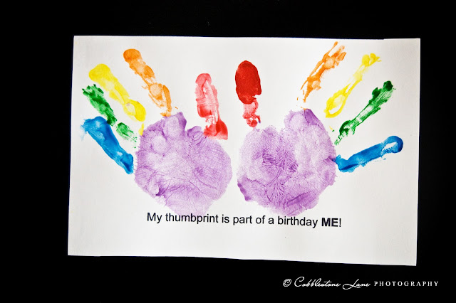 With birthdays on the brain - how could we not have a week dedicated to such a fun theme. One of the activities we worked on throughout the week was "My Birthday Thumbprint" book. The basic idea was to have one thumbprint become the focal point of each page which showcased something you might find at a birthday.