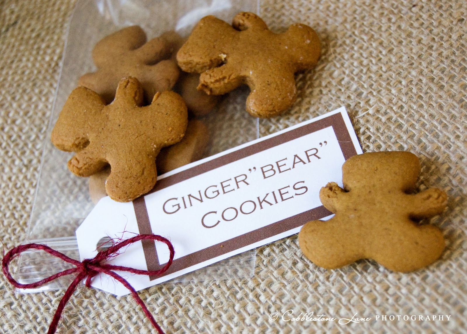 It is Baby J's first birthday and "bears" is the theme!  What better way to celebrate than with a big first "BEAR"thday celebration!  I wanted to send a little something special with the invitations for the guests, so I came up with the idea of sending along tiny packages of Ginger"bear" cookies (gingerbread cookies cut out with a bear cookie cutter).  Check back soon as I plan to be showing a few pictures of the occasion in a later post!  :)
