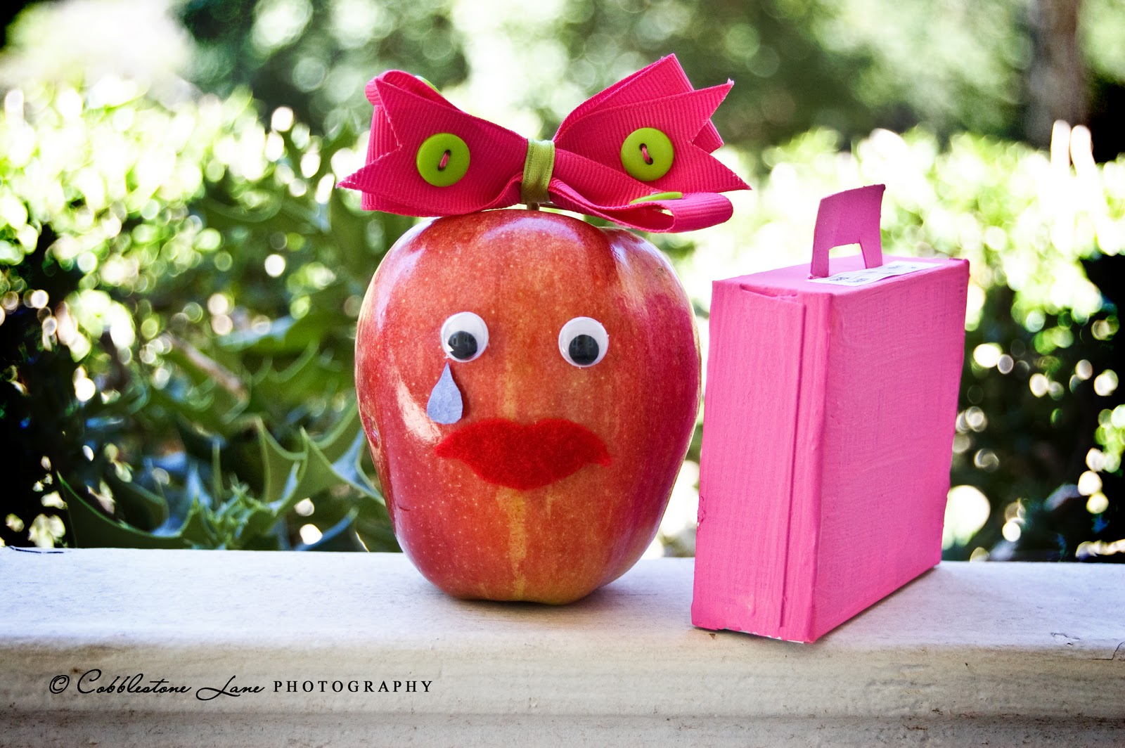 MONDAY (THIS afternoon):  We will hear a knock and open the door to find a dismayed apple outside - Apple-onia Apple to be exact.  She has a bruise on her head and all she can remember is her name.  She has a suitcase in her possession but it is locked and she cannot remember the keypad code (yes, her suitcase is THAT fancy).  She needs our help to find out more about herself and her predicament.  But for the moment, she needs to rest.
