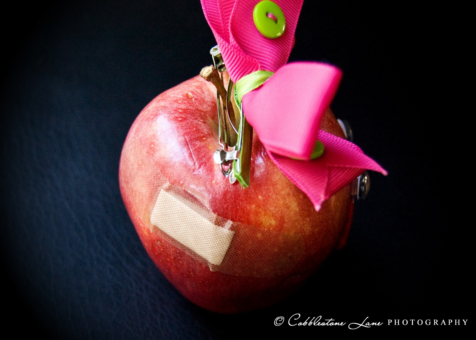Encourage your child to think of what might have happened to Apple-onia.  What could cause a bruise on an apple (How do children get bruises?  Do they think the same thing could happen to an apple? etc.).  Do apples have enemies - a pest that could have caused poor Apple-onia to get hurt?  If your child would like to suggest an idea, please feel free to submit it in the comment form section once again.