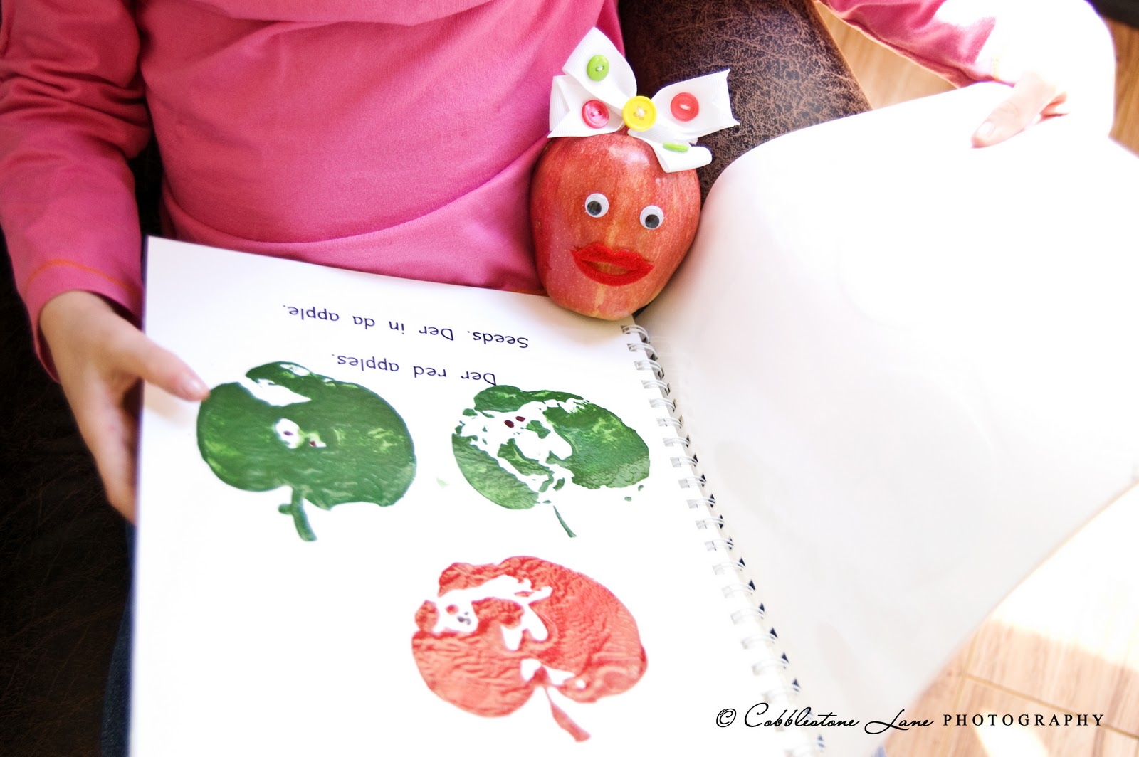 Who doesn't love a good story and snuggle?  Apple-onia is no exception!  My daughter read her a book about apples that she had made last year.  Apple-onia enjoyed looking at the pictures.