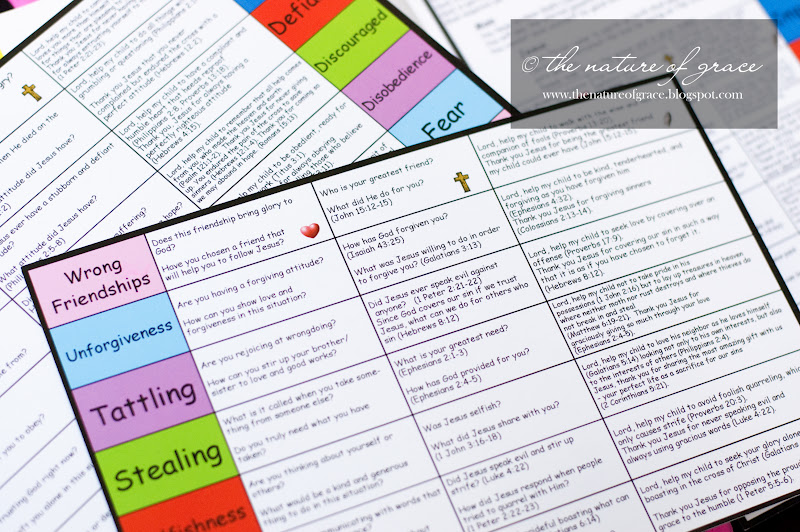 For many, trying to accomplish such things may sound daunting at first - BUT IT IS WORTH IT! I was determined to try at the time, but found it very difficult to follow through. It was really hard in the heat of the moment or when some other little one needed me at the same time, to remember what scriptures to use for which circumstance, much less think of what questions to ask at the time to probe my daughter's heart and help her to understand her own sinful motives. I grew a bit discouraged, and often found I would slip into my own reasoning as to why she should or should not do something instead of bringing her to the Word of God and letting HIM touch her heart.
